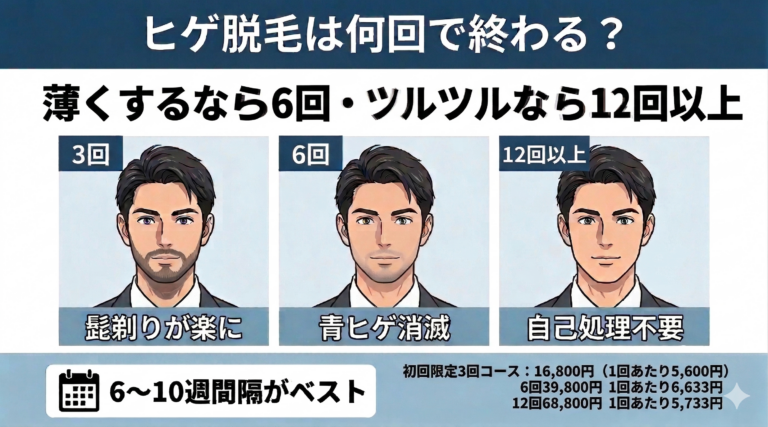 ヒゲ脱毛は何回で終わる?回数選びで失敗しないための効果・間隔・途中離脱ガイド